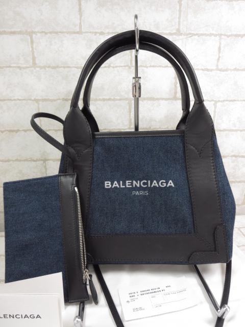 ネイビー カバ XS 2way レザー×キャンバス バッグ