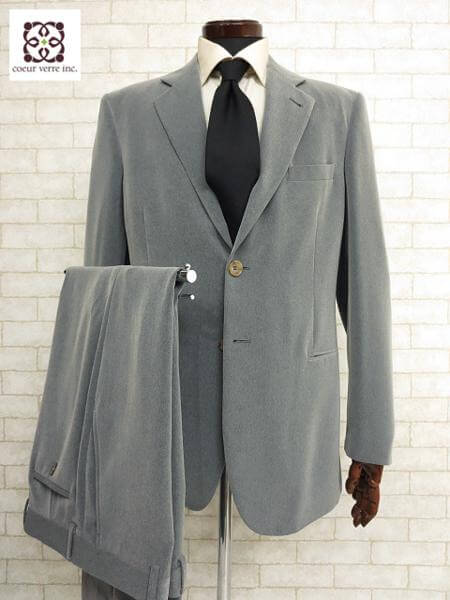 お色はグレー、ジャケットとスラックスの2ピーススーツです。