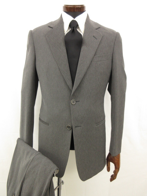 色はグレー、細かな織柄が入った素敵なスーツです。