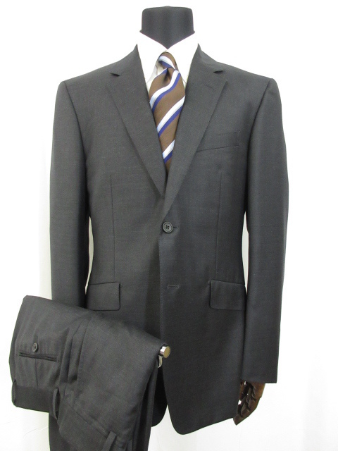 色はチャコールグレー、CHARLES CLAYTONのSuper150’Sの生地が使用されたスーツです。