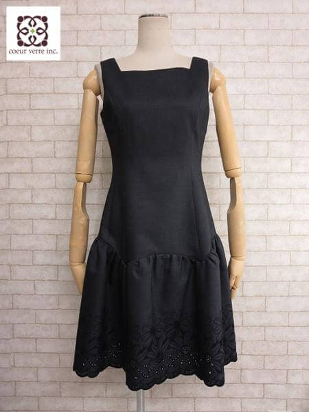 ネイビー一色ですが、ウエスト部分には切替え、裾には花柄のレースが装飾していたりと、